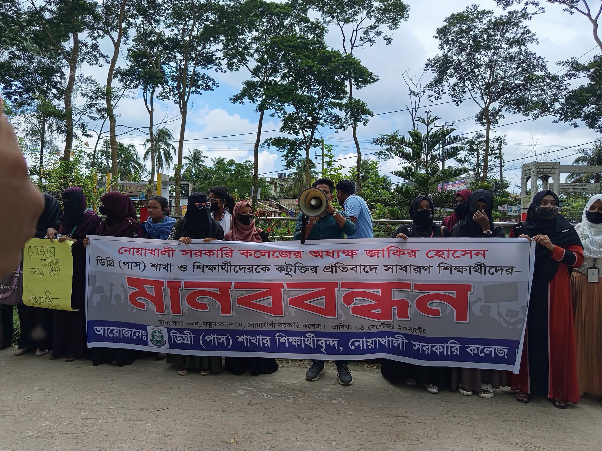 বৈষম্য নিরসন এবং ডিগ্রি শাখা নিয়ে কটুক্তির প্রতিবাদে মানববন্ধন, অধ্যক্ষের আশ্বাসে প্রত্যাহার