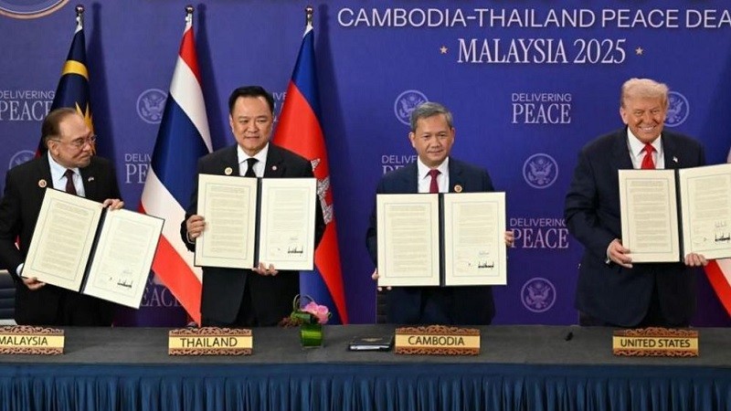 মার্কিন প্রেসিডেন্ট ডোনাল্ড ট্রাম্পের মধ্যস্থতায় শান্তি চুক্তি সই করেছে থাইল্যান্ড ও কম্বোডিয়া। রোববার মালয়েশিয়ায় আসিয়ান শীর্ষ সম্মেলনের ফাঁকে এই চুক্তিতে