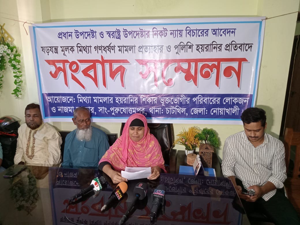 নোয়াখালীতে মিথ্যা মামলা প্রত্যাহার ও পুলিশি হয়রানির প্রতিবাদে সংবাদ সম্মেলন
